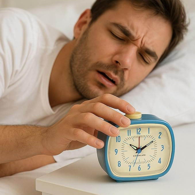 - Special Feature : CLASSIC VINTAGE DESIGN - This retro-style alarm clock boasts a charming and eye-catching design. The blue plastic case with an ivory face creates a nostalgic aesthetic that is perfect for any nightstand, desk, or office., EASY-TO-READ - The clock face features large, easy-to-read numbers in a crisp, clear font, making it simple to check the time at a glance. The clock hands, including a contrasting red second hand, are equally easy to see, ensuring accurate timekeeping., GLOW IN THE DARK - This clock's face features glow-in-the-dark hands, making it practical in low-light conditions. It measures 4.25" x 3.5" x 2.5", making it a compact yet stylish addition to any room that appreciates vintage flair. A single AA battery keeps it running smoothly., QUARTZ MOVEMENT - The Kikkerland Retro Alarm Clock is powered by reliable quartz movement, ensuring precise and dependable timekeeping. It keeps your schedule running smoothly, making it a dependable timepiece for your daily routine., TRADITIONAL BEEPING ALARM - The alarm sound is a classic beeping sound, adding a touch of nostalgia to your mornings. If you want more sleep, the alarm can be turned off using the shut-off button on top of the clock. CLASSIC VINTAGE DESIGN - This retro-style alarm clock boasts a charming and eye-catching design. The blue plastic case with an ivory face creates a… See more