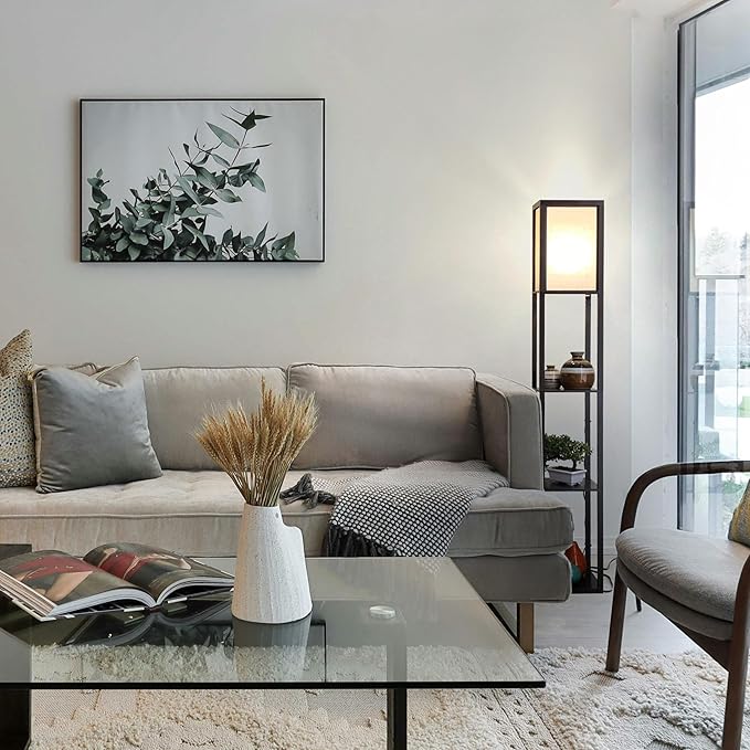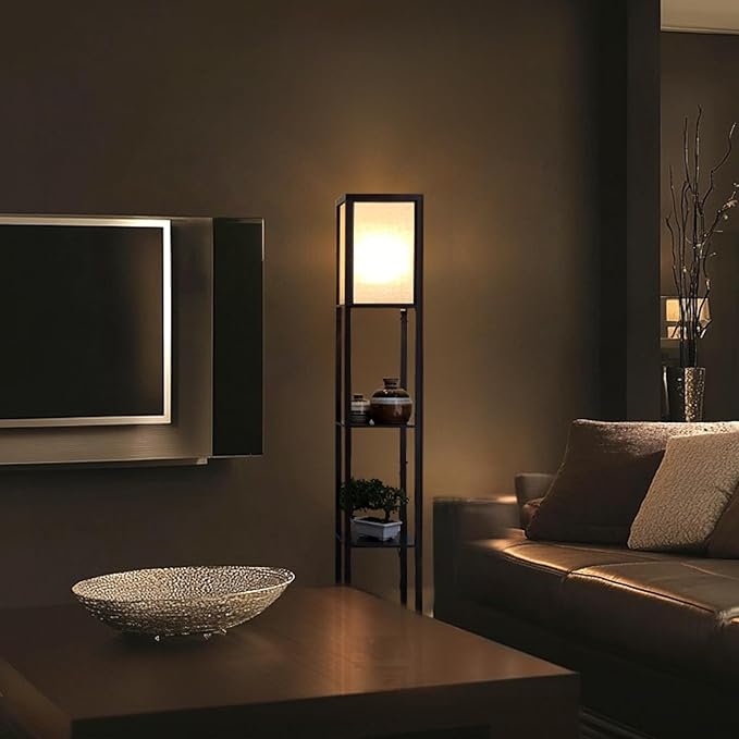 - Triple Storage Lamp & Shelf Combo: This durable tall lamp with stable structure, high loading lends a soft ambient glow to contemporary spaces while providing a 3 tiered display shelving for added convenience. Style and function combine to brighten up your room and provide a storage or display area for vases, books, or other items. Utilize the convenience of this floor lamp in your bedroom, living room, guest room, foyer, or office.