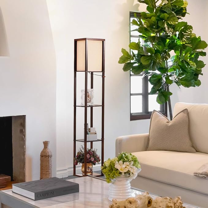 - Triple Storage Lamp & Shelf Combo: This durable tall lamp with stable structure, high loading lends a soft ambient glow to contemporary spaces while providing a 3 tiered display shelving for added convenience. Style and function combine to brighten up your room and provide a storage or display area for vases, books, or other items. Utilize the convenience of this floor lamp in your bedroom, living room, guest room, foyer, or office.