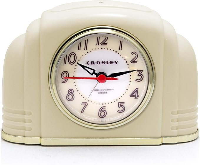Crosley Vintage Art Deco Analog Alarm Clock, Quiet Sweep Non-Ticking, Automatic Dimmable Smart Light, Simple Controls, (Ivory)*