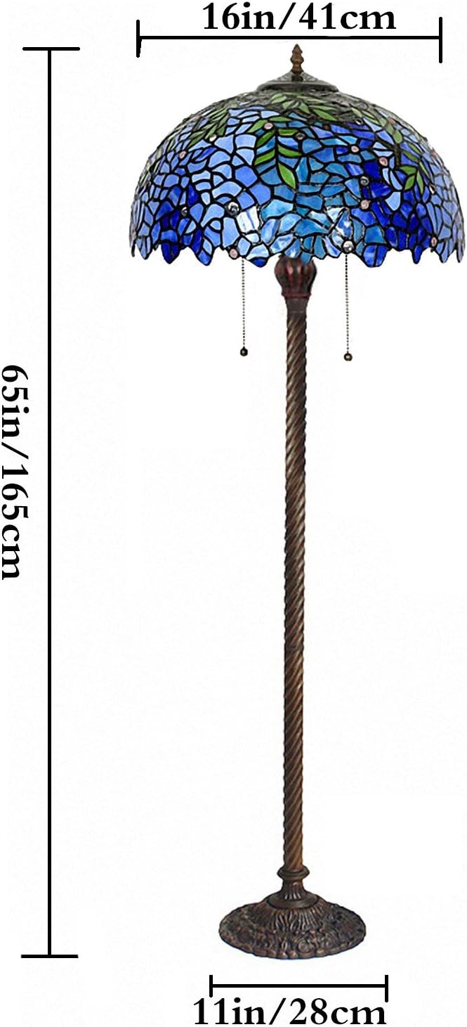 Floor Lamp, Tiffany Style Stained Glass Purple Wisteria Hanging Lamp with Handmade Lampshade, Suitable for Decorating Room (Purple, 16in)