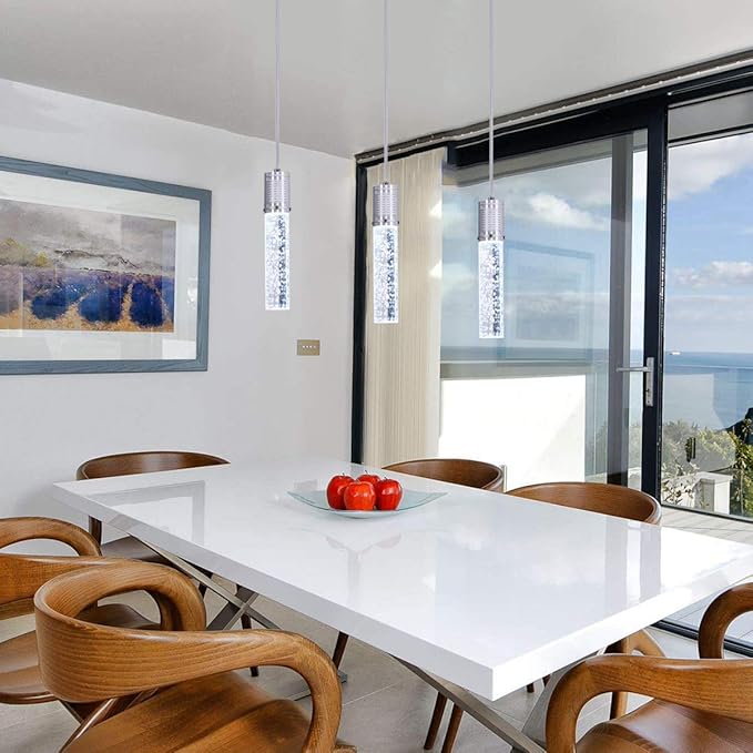 3 Lights Independent Kitchen Island Dining Room Light Pendant Light Fixtures Bubble Crystal Chandeliers Modern Kitchen Island Lighting Chandeliers Fixtures LED Lampara, 6000K LED Bulbs Included