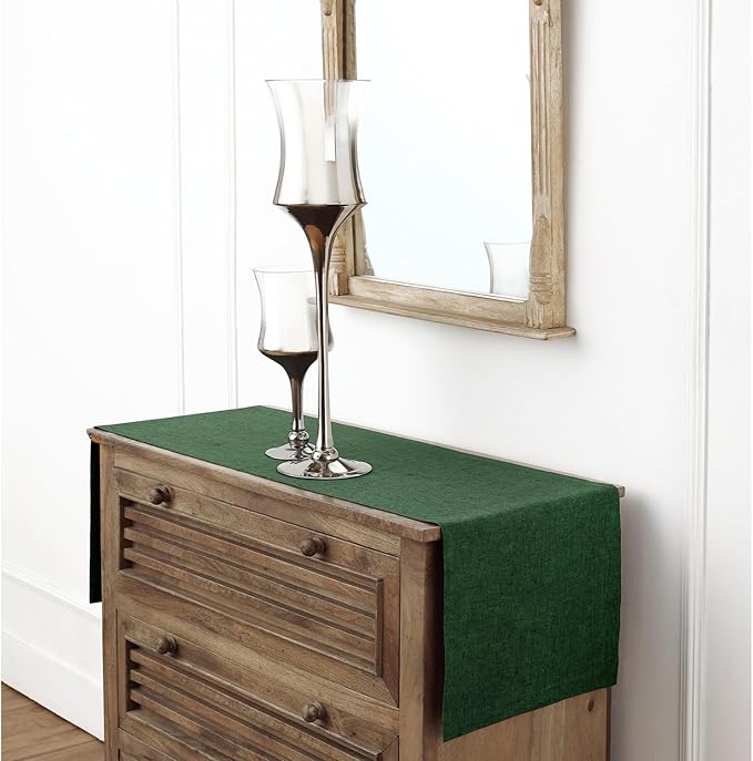 Solino Home Linen Table Runner 48 Inches - 100% Pure Linen Forest Green Table Runner 14 x 48 Inch Ideal for Dresser and Coffee Tables - Athena - Christmas, Thanksgiving