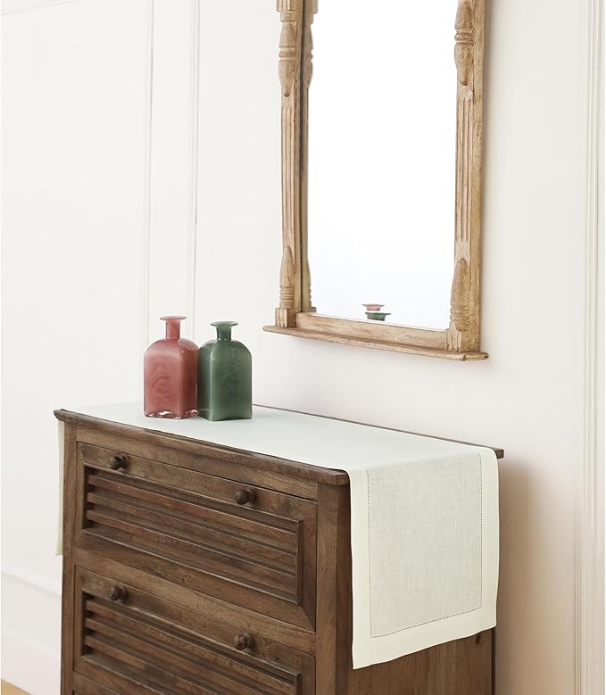 Solino Home Linen Ivory Table Runner 72 Inches Long - 100% Pure Linen Hemstitch Table Runner 14 x 72 Inch for Dresser, Dining, Fall, Halloween, Thanksgiving, Christmas, Holiday - Classic Hemstitch