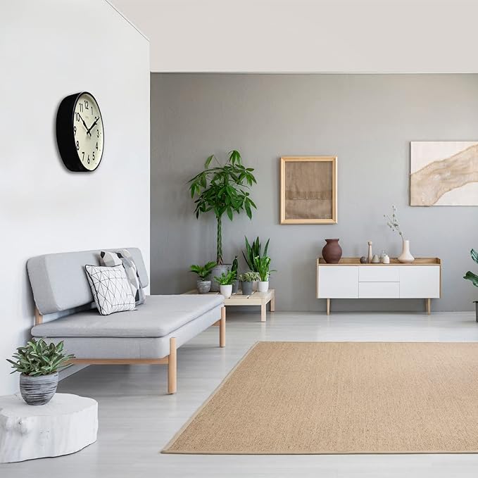 - QUALITY: Non ticking silent quartz mechanism. Solid black quality steel rim. The thick metal rim allows you to hang directly from the rim, making hanging simple and easy.