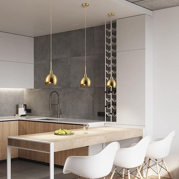 - Gold Kitchen Island Pendant Light: The hallway pendant lighting bring sophisticated style and a warm glow to any corner of your home. Gold brushed finish that fully presents a contemporary yet romantic atmosphere. The streamlined cone shade maximizes the lighting potentials and never out of time!