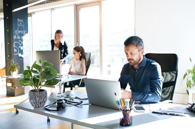 AlphaAcc Artificial Plants Real Looking and Touching Fake Plant Evergreen Plastic Fiddle Leaf Fig Plant with Rustic Black Cement Planter for Housewarming Office Desk Decor