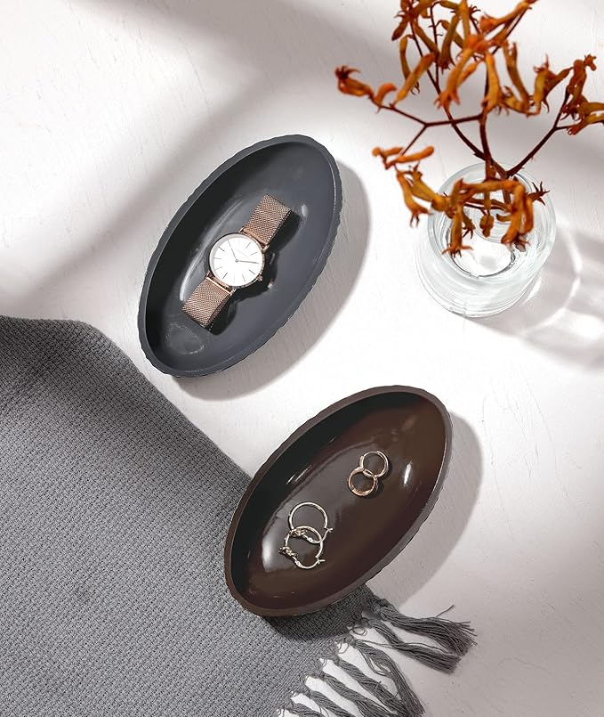 - Functional Trinket Dish: Ideal to place small jewelries or trinkets like rings, earrings, bracelets, necklace, hairpins, vanities, keys, watches, decorative balls, or other small items in the living room, kitchen, bathroom, sink, bedside table, entryway, etc. Avoid misplacing, tidy your desktop