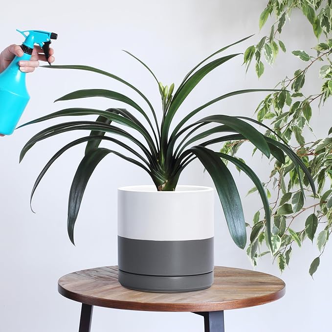 - Simple, elegant, and modern cylindrical straight round planter pot with saucer and drainage hole.