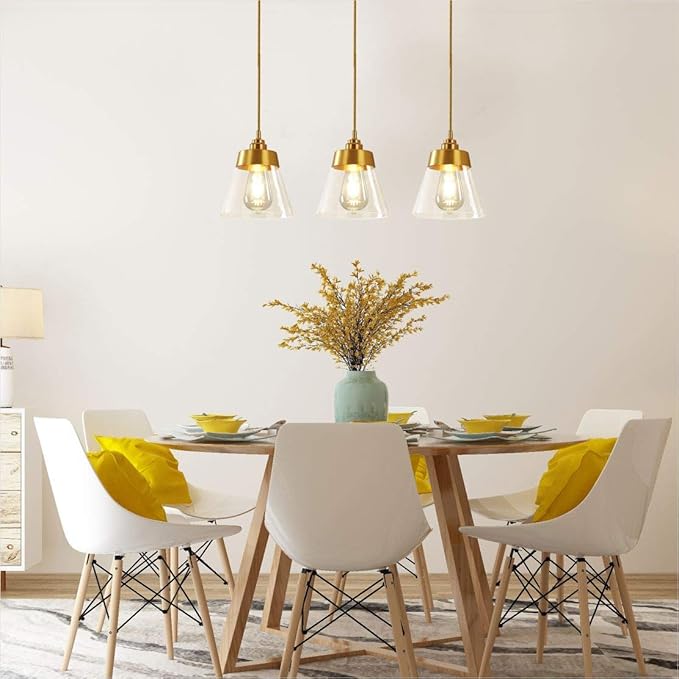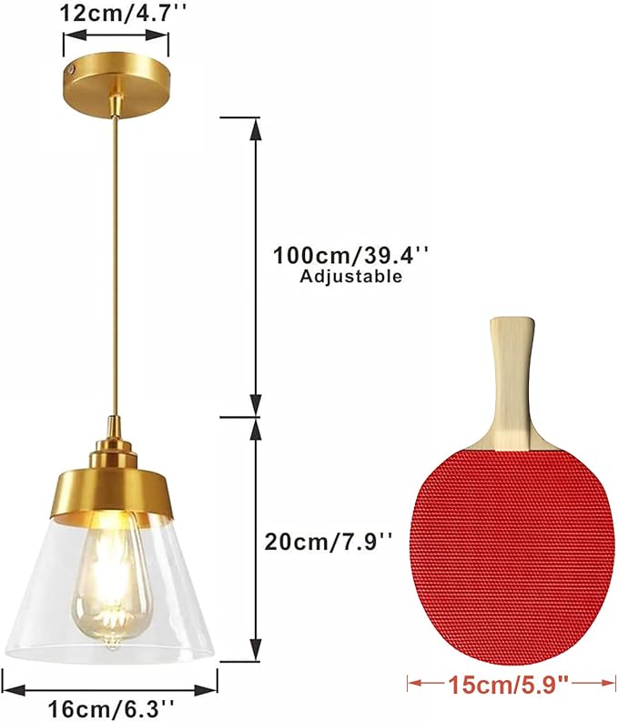 - ▶►【Mini Conical-Shaped Design】 The glass pendant light feature a gold lamp body and clear hand blown glass, which has high light transmission, creates a modern and vintage atmosphere.