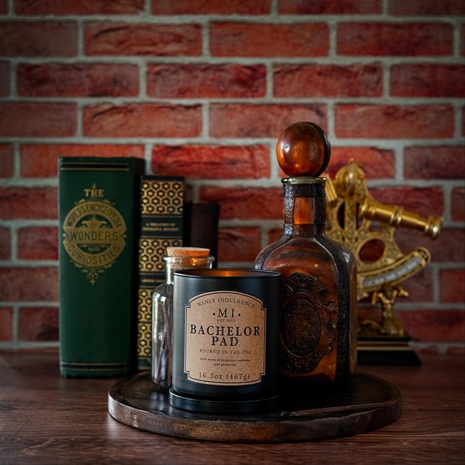 Manly Indulgence Bachelor Pad Scented Candles for Men, 16.5 oz Single Wick, Premium Soy Blend Wax, 60H Burn, Candles for Home Scented – Made in The USA