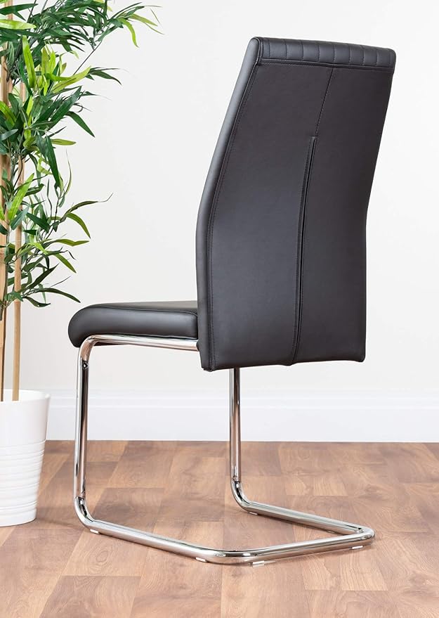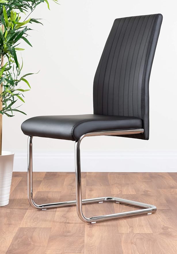 Atlanta White High Gloss and Chrome Metal Rectangle Dining Table and 4 Black Lorenzo Dining Chairs Set