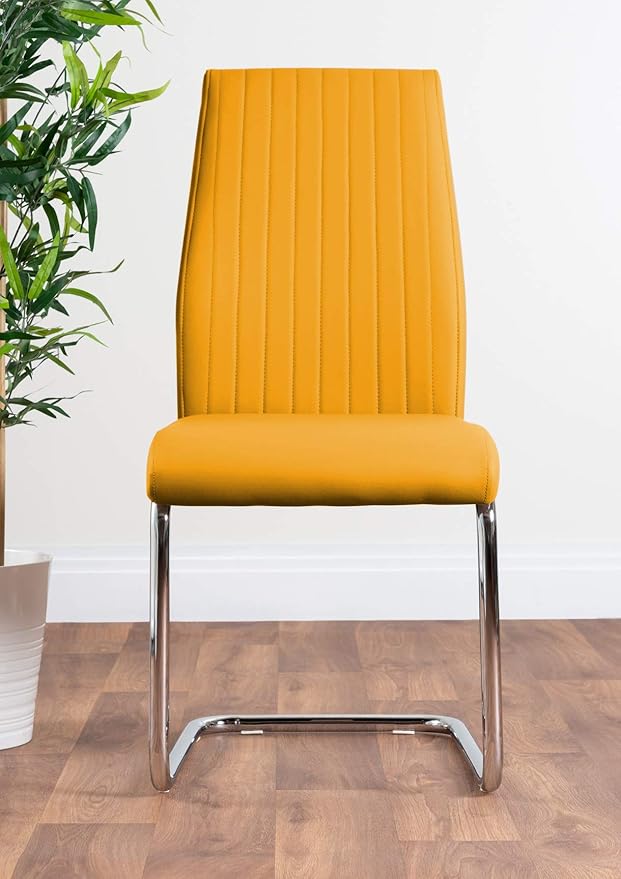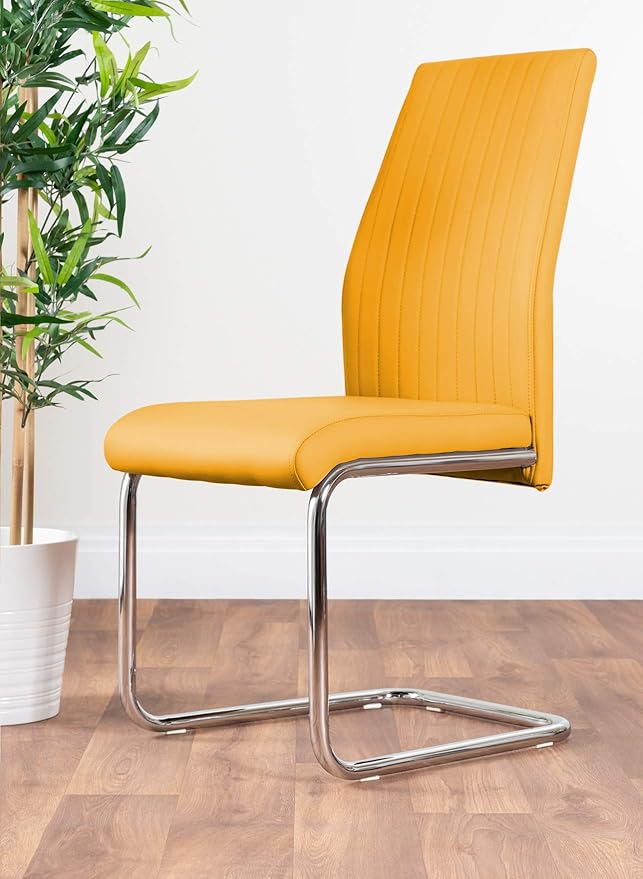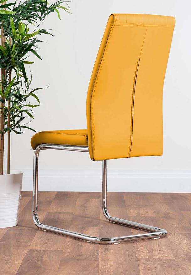 Atlanta White High Gloss and Chrome Metal Rectangle Dining Table and 4 Mustard Lorenzo Dining Chairs Set