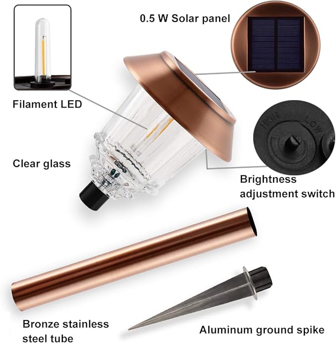 - Elegant Diamond-shaped Glass: Solar lights outside features electroplated copper body with a vintage style. Solar lights 360° light effect with diamond-shaped glass creates snowflake lighting. After charging for 6 - 10 H, it can illuminate for 8 - 12 H.