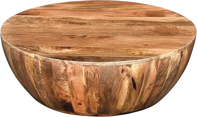 - Modern Farmhouse Inspired Elegance – This coffee table brings the warmth of farmhouse style into your home with a contemporary touch. Its drum-shaped, tapered silhouette pairs perfectly with a variety of interior aesthetics, from rustic and vintage to modern and transitional, making it a versatile centerpiece for any living space.