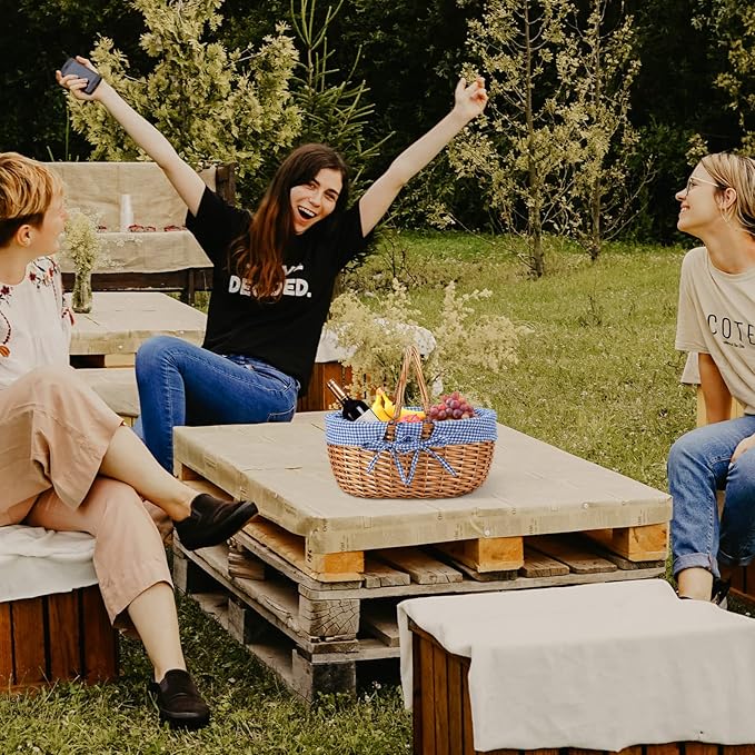 - Material: Picnic basket is made of willow. liner: USA rural style removable blue and white gingham pattern liner,it is easy to clean.