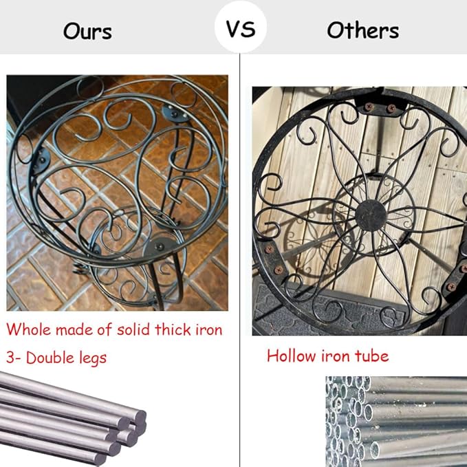 - HEAVY DUTY】:This plant holder is made of high quality,thick,sturdy SOLID iron steel.NOT HOLLOW IRON PIPE.Total net weight is 7.94 lbs. Can holds a plant in a heavy ceramic pot.Easily hold 100 or more lbs.