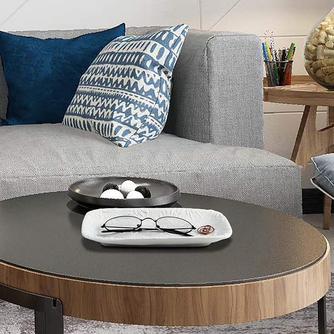 Ceramic Jewelry Tray, Bathroom Kitchen Vanity Decorative Trinket Tray Ring Dish for Earrings Rings Watch Keys, Ceramic Dessert Plate, White