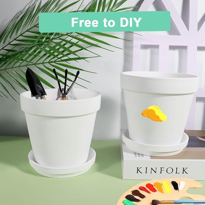 - 【Drainage Holes and Sauce】Each terra cotta with white paintcomes with a small drainage hole at the bottom, increasing drainage efficiency when watering, protecting the health of your plant. And the saucer can keep your indoor or outdoor clean.