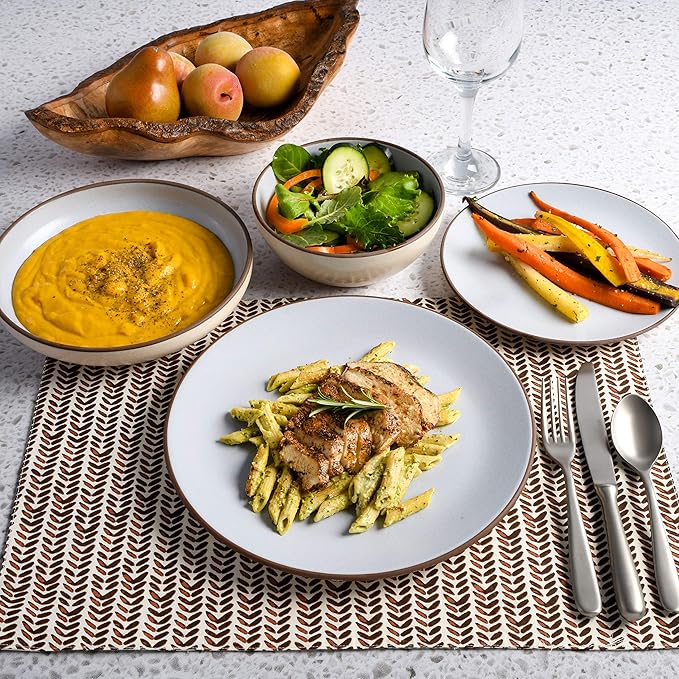 - WHAT'S IN THE BOX: Service for 4 that includes 4 of each of the following: 10.5” Dinner Plates, 6.25” Dessert Plates, 8.75” Dinner Bowls and 6’25” Cereal Bowls