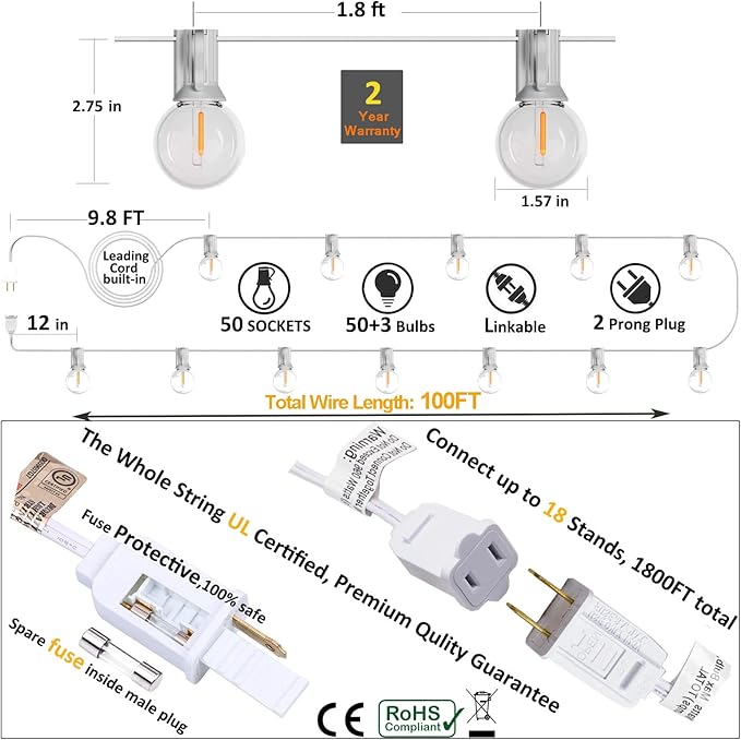 - Practical patio lights white - no need buying extra extension cord for white outdoor string lights for outside,confidently plug in the socket with 9.8 feet leading wire for any outdoor occasions