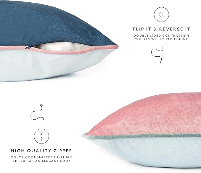 MONDAY MOOSE Decorative Throw Pillow Covers Cushion Cases, Set of 4 Soft Velvet Modern Double-Sided Designs, Mix and Match for Home Decor, Pillow Inserts Not Included (18x18 inch, Pink/Blue)