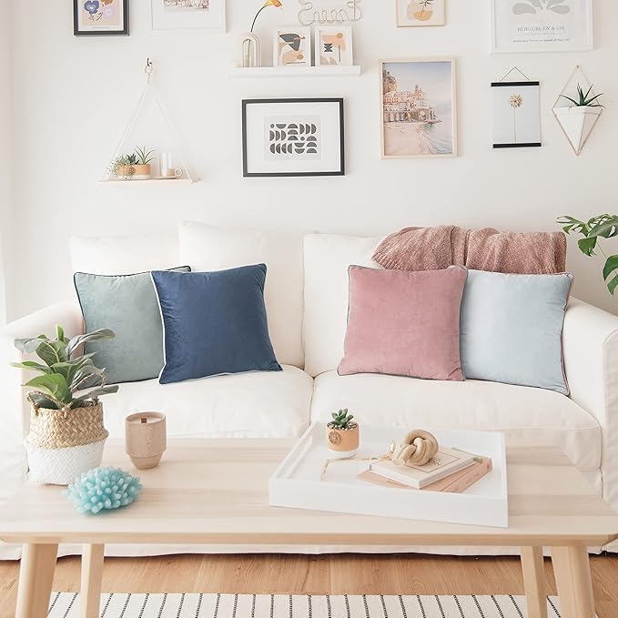 - SET OF 4: Includes 1 pink velvet pillow + 1 teal velvet pillow + 1 blue velvet pillow + 1 light blue velvet pillow