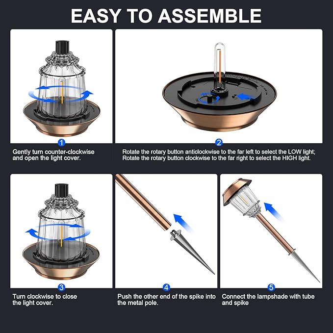 - Elegant Diamond-shaped Glass: Solar lights outside features electroplated copper body with a vintage style. Solar lights 360° light effect with diamond-shaped glass creates snowflake lighting. After charging for 6 - 10 H, it can illuminate for 8 - 12 H.
