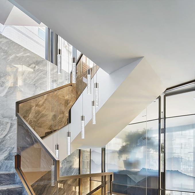 Pendant Lighting for Kitchen Island,High Ceiling Chandelier, Modern Chandelier Light Fixtures, Raindrop Chandelier Dimmable Lighting Large Living Room Chandelier Staircase Foyer,9 Lights……