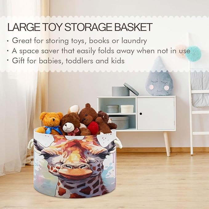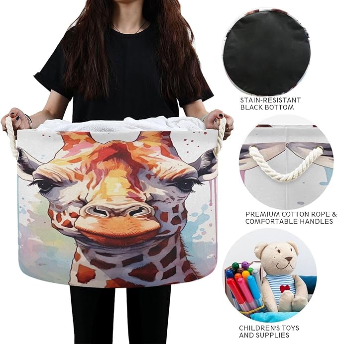 Xigua Large Cotton Rope Storage Basket - Cute Little Giraffe Baby Laundry Hamper for Blankets, Toys, and Storage