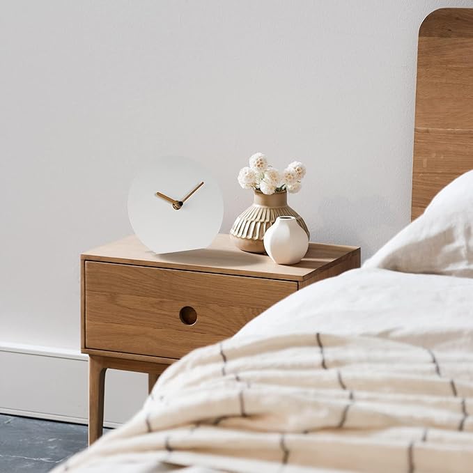 SOFFEE DESIGN 6'' One-Piece Table Clocks Without Scale Modern Minimalist Style Decoration, Iron Silent Quartz Desk Clock Creative Ornaments, Battery Operated Non Ticking for Home, White