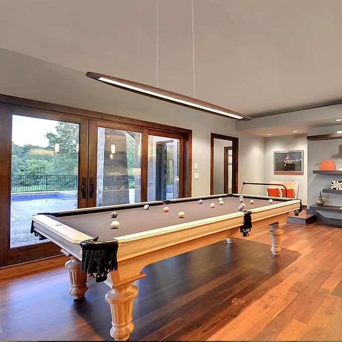 Wood Linear Pendant Hanging Light Fixture Minimalist Light Linear Chandelier Wood Kitchen Island Lighting 40w Dimmable for Dining Room Dining Table Living Room Pool Table Walnut Color
