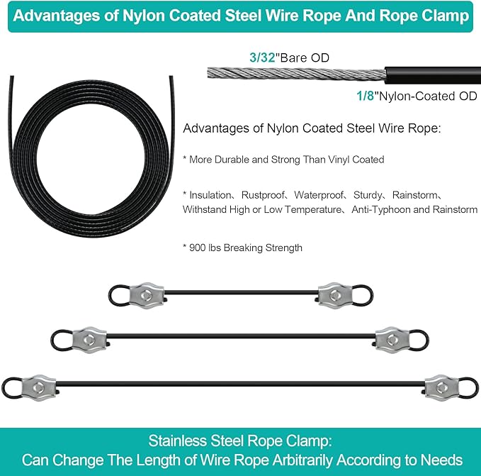 - 【Integrity Guarantee】 Nylon coated stainless steel cables are more resistant to corrosion, rust and hot sun than vinyl coatings, ensuring that they will not fall off for many years. If you have any questions, please feel free to contact us, we will solve it as soon as possible and provide you with a satisfactory solution