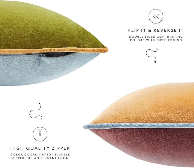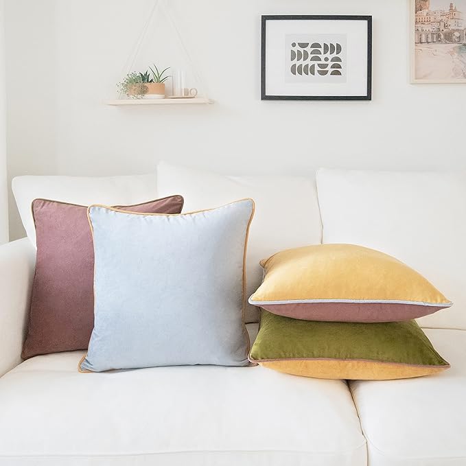 - SET OF 4: Includes 1 green velvet pillow + 1 light blue velvet pillow + 1 yellow velvet pillow + 1 purple velvet pillow