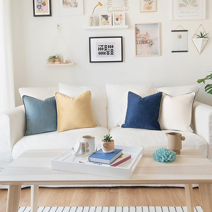 - SET OF 4: Includes 1 blue velvet pillow + 1 beige velvet pillow + 1 white velvet pillow + 1 teal velvet pillow
