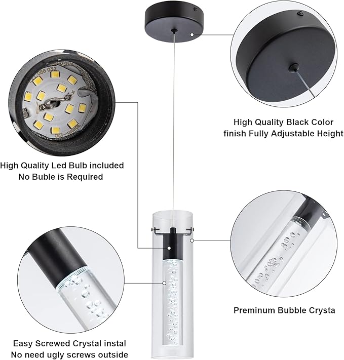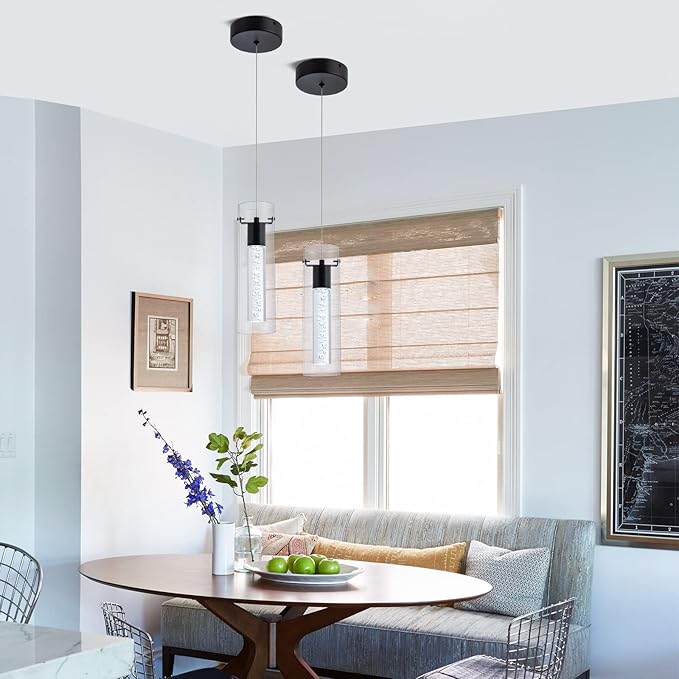 - [Home's Ambience]: The black finish and bubble cylinder of our pendant lights kitchen island 3-pack create a stylish and elegant atmosphere that enhances any room. Ideal for use in your kitchen, dining room, bedroom, interior hallway, bar, or coffee shop, this modern light fixture.