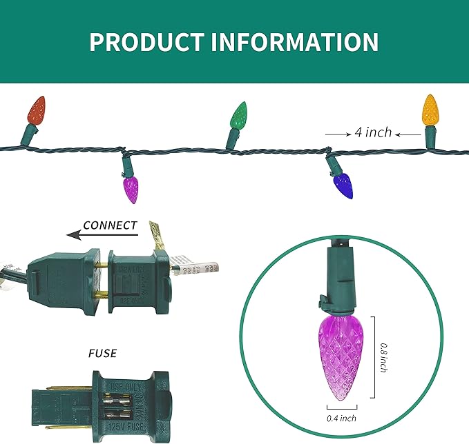 - 【Premium Waterproof & Weather-Resistant】 Heavy-duty waterproof coating protects against rain, snow, and harsh weather.Ideal for roofs, gardens, patios, and all Christmas decorations outdoors.Shatterproof C3 LED bulbs ensure long-lasting performance.
