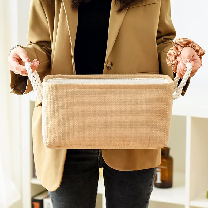 TheWarmHome Storage Bins for Shelves - Medium 3Pack 13.8L*9.8W*6.7H inch Canves Storage Basket for Organizing, Fabric Storage with Handles for Clothes Baby Dog Toys(Beige)