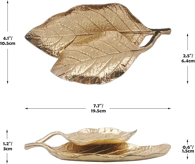 - Multi-functions: This leaf shaped jewelry dish is not only ideal to be used as a jewelry organizer dish for rings/necklaces/keys/earrings/hand chains, but also a decorative dish tray on dresser/vanity table/bathroom table and a perfect gift for Birthday, Christmas, Anniversary, Wedding, and etc.