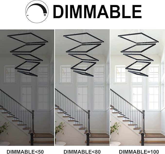 - ADJUSTABLE BRIGHTNESS DESIGN —— With its dimmable feature, you have the freedom to effortlessly control the brightness of this LED chandelier to suit your preferences, eliminating any concerns about finding the perfect lighting match for your home. The 6000K cold white light it emits is ideally suited for indoor environments.