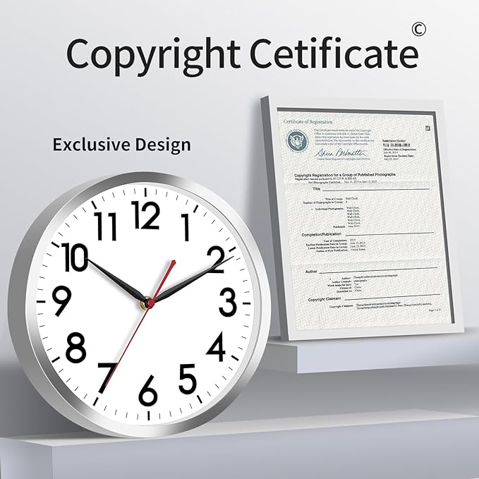 AKCISOT Wall Clock 10 Inch Silent Wall Clocks Battery Operated Non Ticking - Modern Silver Clock Decorative for Kitchen, Bathroom, Bedroom, Living Room, Office, Home(Silver)