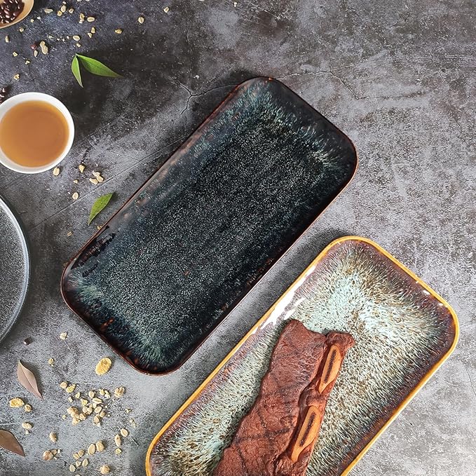 - These serving plates can be used on different occasions, parties, entertaining parties, banquets, various events, for platters, serving trays, cakes, sushi, charcuterie, cheese, cookies, the glaze of the plates is very beautiful and impresses everyone Deeply impressed and complimented.