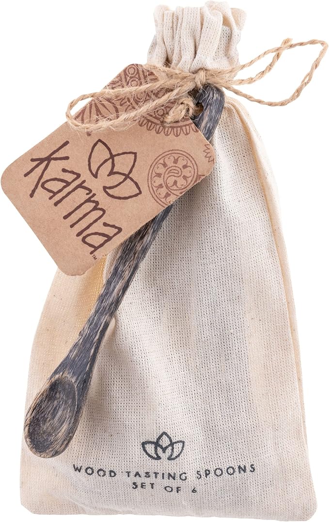 Karma Tasting Spoons Set - Tasting Spoons for Cooking - Gray Wood Kitchen Utensils - Gray Wood - Set of 6