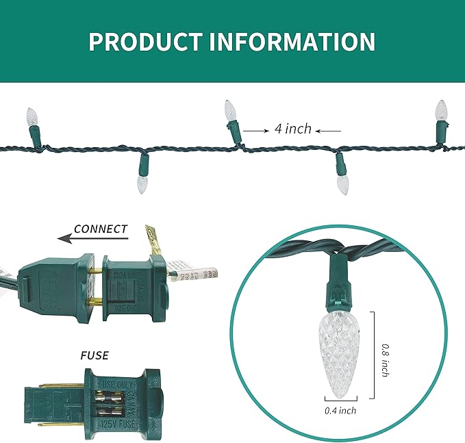 - 【UL Certified & Safe for Indoor/Outdoor Use】 UL Listed for guaranteed safety & durability. Suitable for both Christmas lights indoor and outdoor Christmas lights waterproof applications. Low-voltage design prevents overheating, making it family and pet-friendly.