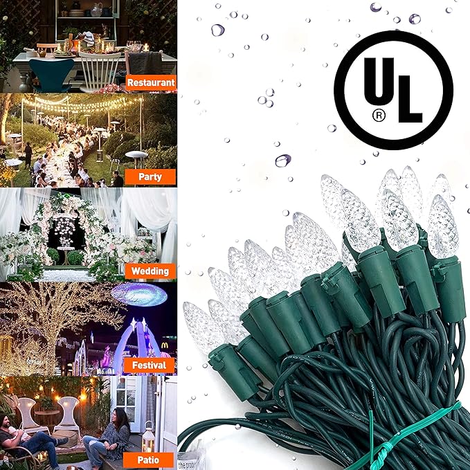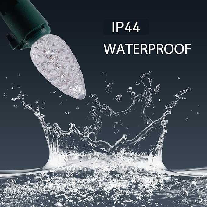 - 【Premium Waterproof & Weather-Resistant】 Heavy-duty waterproof coating protects against rain, snow, and harsh weather.Ideal for roofs, gardens, patios, and all Christmas decorations outdoors.Shatterproof C3 LED bulbs ensure long-lasting performance.