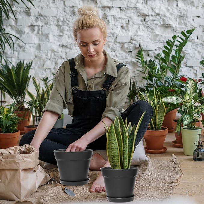 - 【Most repotting for Indoor Plants】 This 6inch Plant pot set includes 16 pieces planting pots and 16 pieces of the matching trays are great for repotting plants, you can grow a variety of plants indoor or outdoors, such as orchid, snake plants, mint, parlor palm, devil’s ivy, cactus, aloe