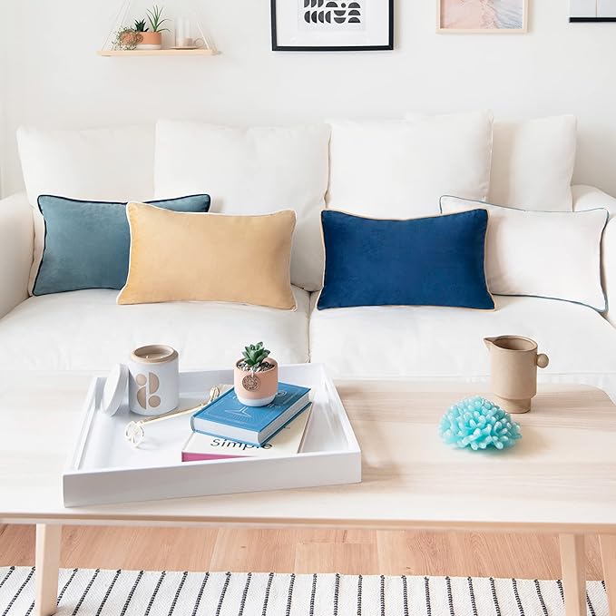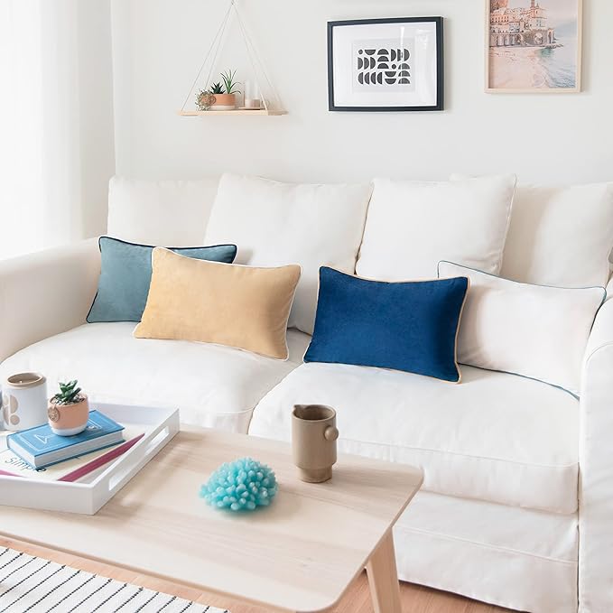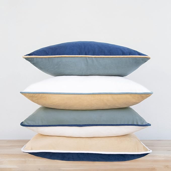 - SET OF 4: Includes 1 blue velvet pillow + 1 beige velvet pillow + 1 white velvet pillow + 1 teal velvet pillow