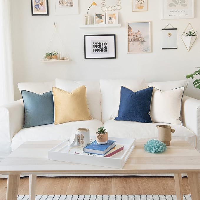 - SET OF 4: Includes 1 blue velvet pillow + 1 beige velvet pillow + 1 white velvet pillow + 1 teal velvet pillow