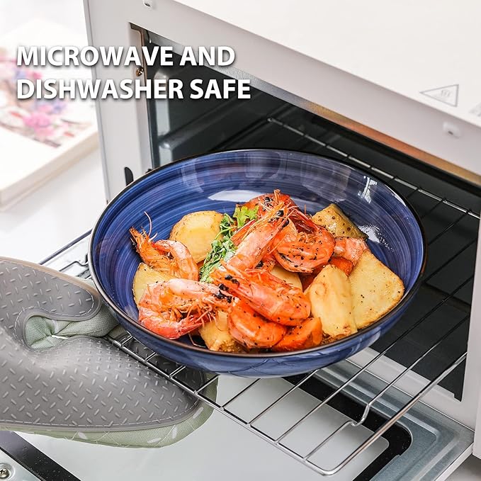 - 【MULTI-USE LARGE BOWLS】Our premium ceramic bowls are multifaceted in their uses. They serve well as salad/pasta/soup bowls, making them perfect for dishes of all kinds. They can even double as a plate, with the perfect 8-inch width and 2-inch depth, their 26 oz capacity lets you serve spaghetti, pasta, soup, fruits, vegetables, oatmeal, salads and desserts, in style.