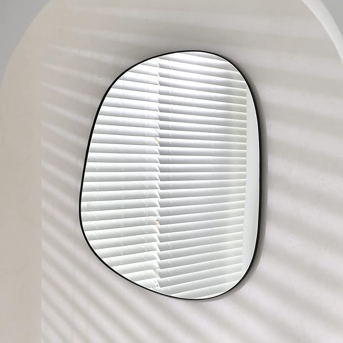 - SIZE AND INSTALLATION: This asymmetrical circular mirror has a diameter of 23"*30". When hanging the wall, hooks are pre-installed behind the backboard, the package includes screws, It is easy to install and hang.Please be sure to hang it safely & carefully with your family.